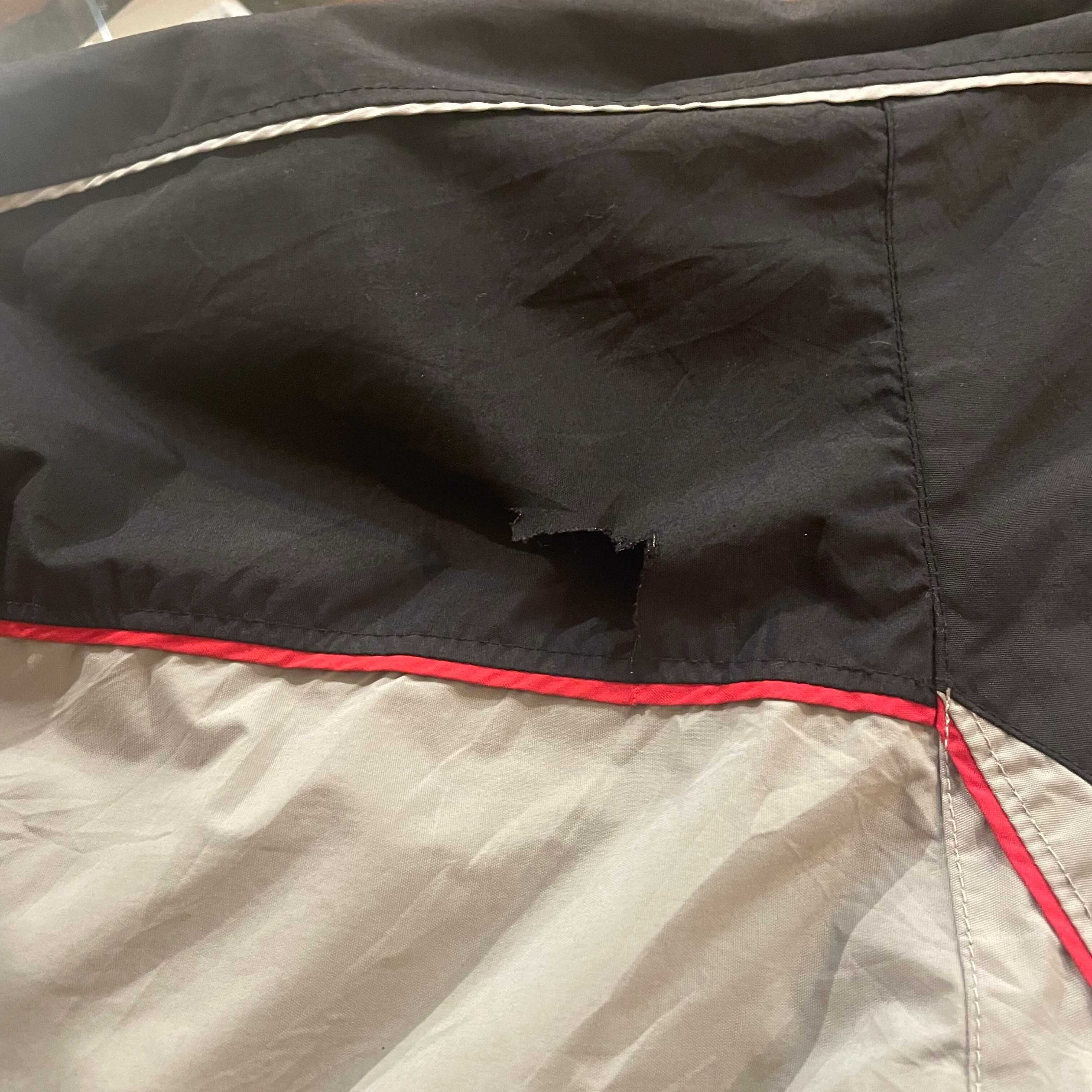 背面左袖に3cmの破れ
